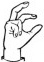 На ћирилици написано МИОДРАГ КУРМАЗОВИЋ састоји се из 17 слова [?]. Исписано ћириличном једноручном азбуком за глувонеме: